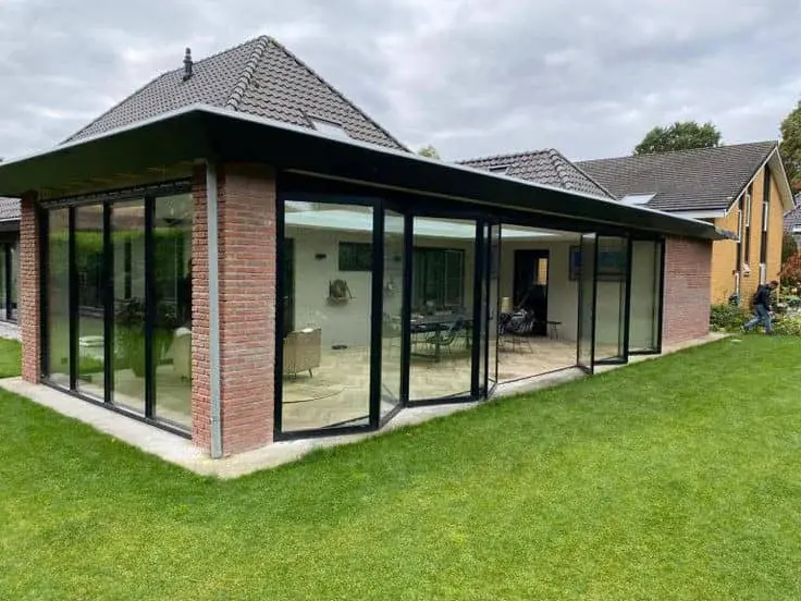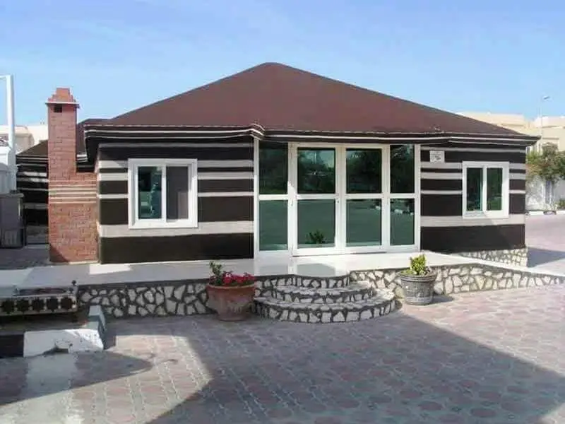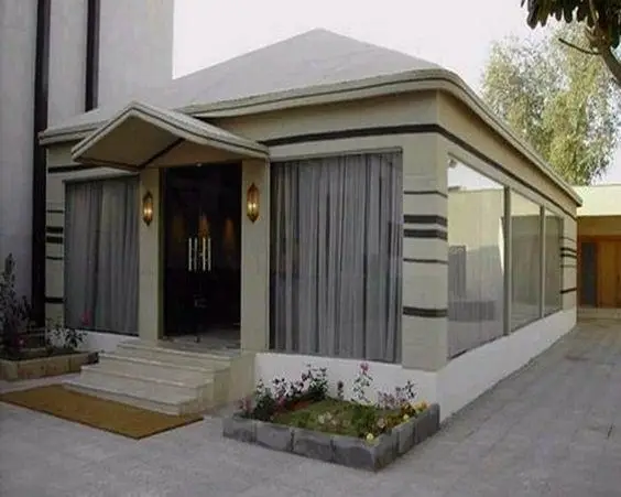 - الشبابيك والأبواب: (غالبًا ما تكون واجهات زجاجية أو أبواب خشبية مزخرفة).