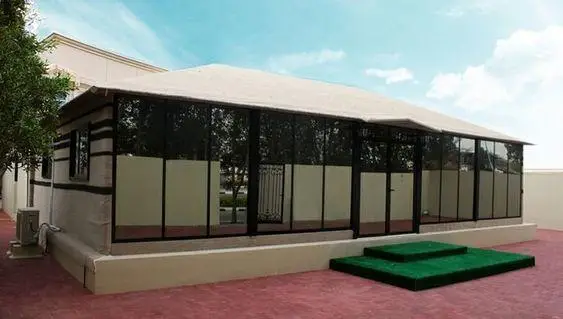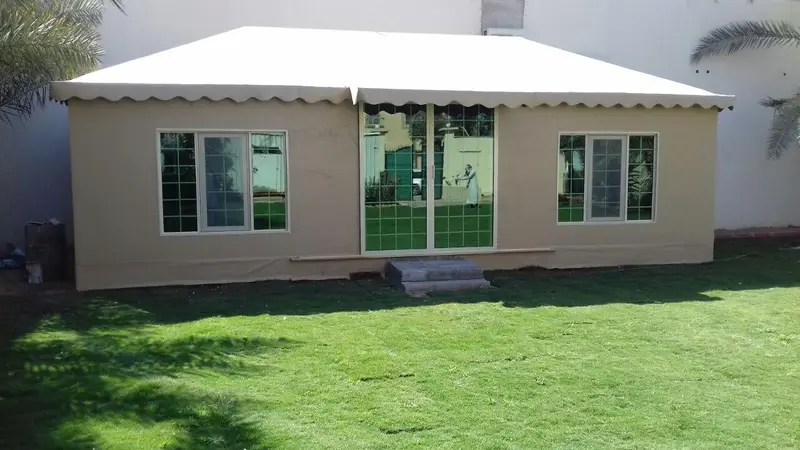 - المواد عالية الجودة: تُستخدم أجود أنواع الأقمشة العازلة للحرارة والرطوبة والصوت، والمقاومة للحريق، بالإضافة إلى هياكل معدنية أو خشبية متينة لضمان ثباتها ومقاومتها للعوامل الجوية القاسية في المنطقة.