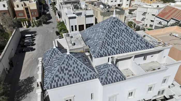 - المقاومة الكاملة للماء والتسرب 🌧️🚫: طريقة تركيب القرميد المتداخلة والمائلة، بالإضافة إلى استخدام مواد عزل مائي تحتها، تضمن تصريفاً فعالاً لمياه الأمطار، وحماية الهيكل من الرطوبة والتسربات التي تهدد عمر المبنى.