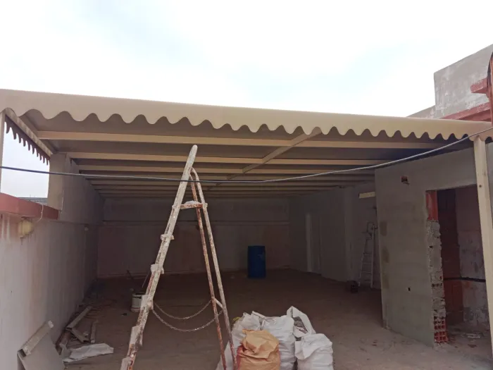 - الوصف: لم تعد البرجولات تقتصر على الخشب التقليدي، بل ظهرت بقوة البرجولات الحديدية بتصاميم مشابهة للخشب (شكل خشب)، أو برجولات الألومنيوم مع أسقف شرائح متحركة.