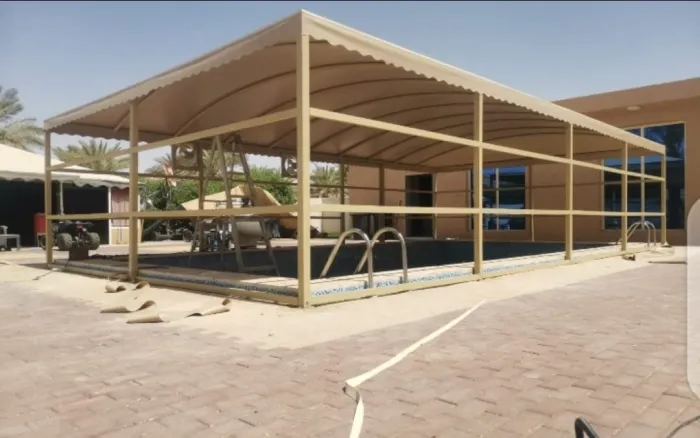 - الميزة الحصرية: توفر مساحات ظل واسعة بأقل عدد من الأعمدة، مما يمنح إحساساً بالاتساع والحداثة. مثالية للميادين الكبيرة، مواقف السيارات الجماعية، ومظلات المسابح.