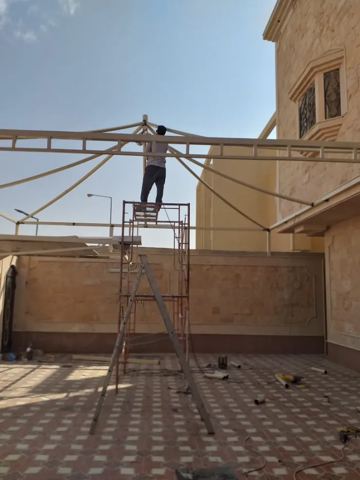 - جودة المواد والضمان: التأكد من أن المواد المستخدمة (قماش، حديد، دهانات) معالجة ضد العوامل الجوية، وطلب ضمان لا يقل عن 5-10 سنوات على التركيب والمادة.