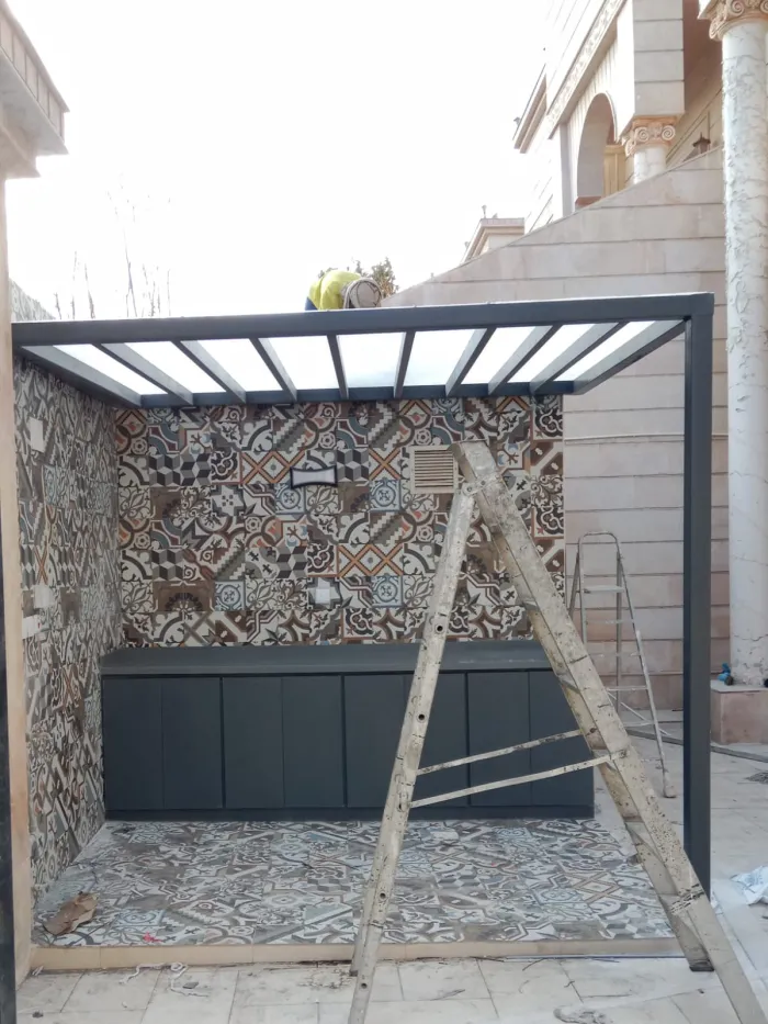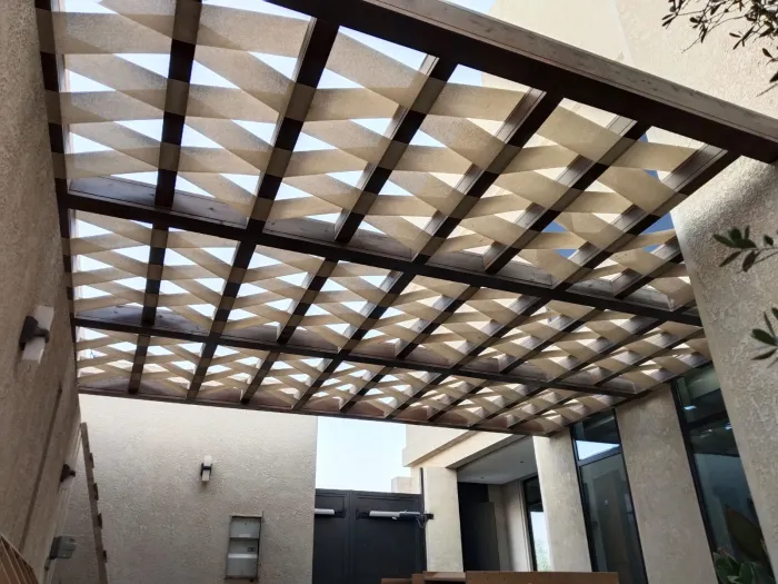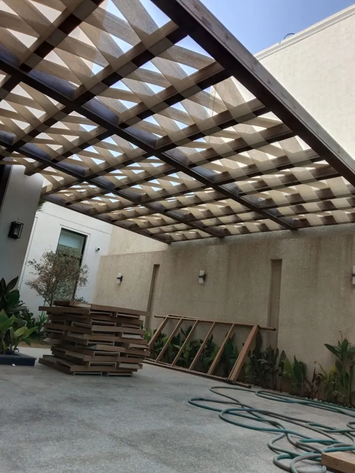 - الاستخدام: مظلات جلسات خارجية، برجولات في الحدائق والفيلات، وأغطية للمداخل.