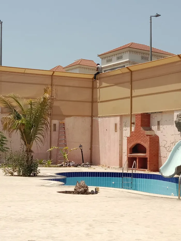 - مظلات المسابح: ضرورية لتوفير الخصوصية وتقليل تبخر المياه وحماية مرتادي المسبح من أشعة الشمس المباشرة.