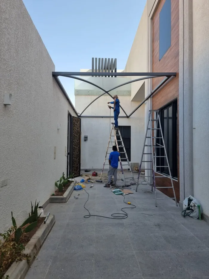 - مظلات المداخل والاستراحات: توفر استقبالاً ظليلاً ومريحاً للزوار وتحسن من واجهة المبنى.